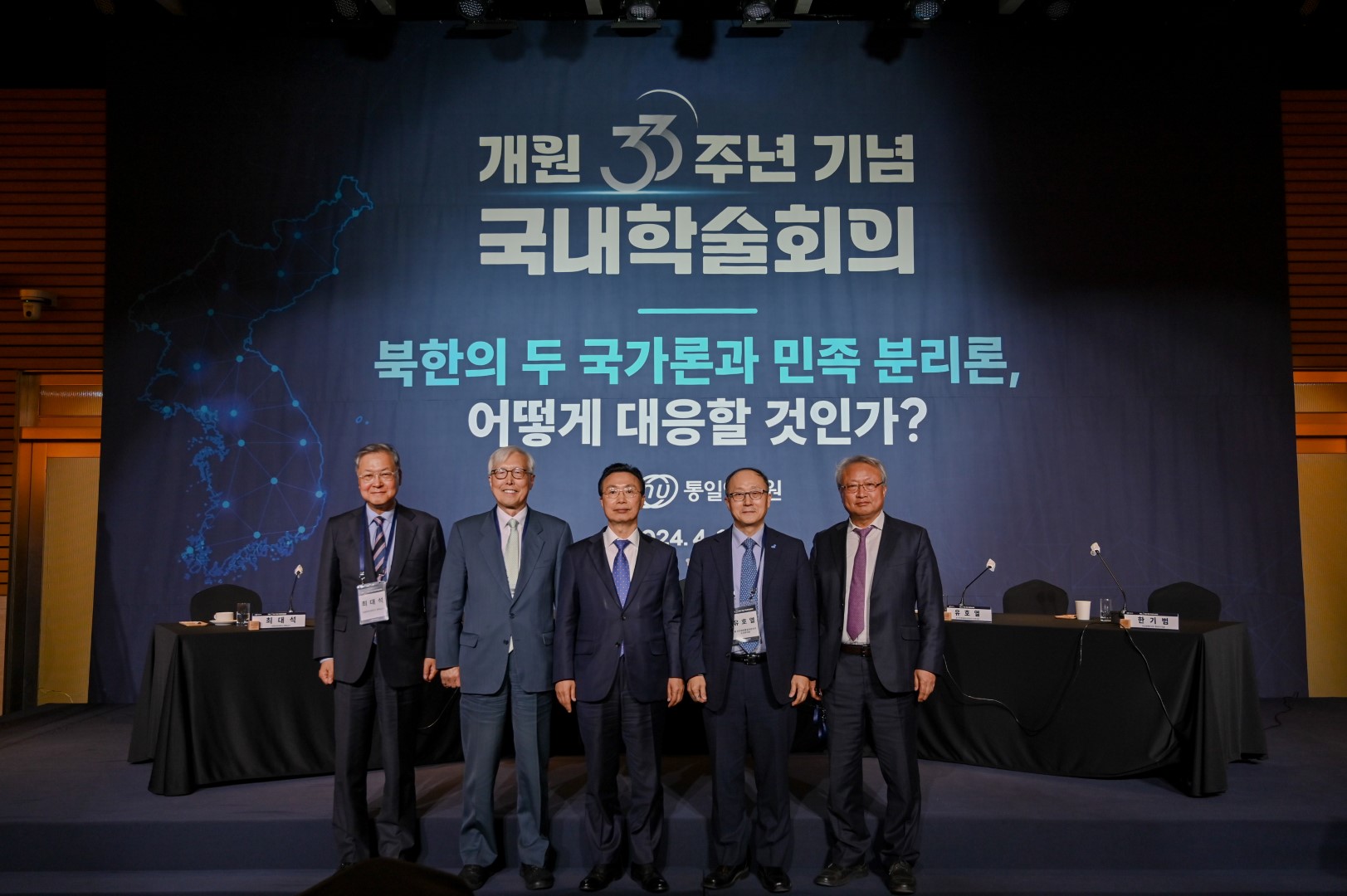 Korea Institute for National Unification (President Kim Chun-sig) held an academic conference to commemorate the 33rd anniversary of its foundation on April 1 (Mon), 2024, from 10:00 to 17:00. The academic conference was organized to evalute the changes in North Korea’s policy towards South Korea, and discuss about South Korea’s strategies to address North Korea’s two state rhetoric and ethnic separatism. The conference began with the opening speech of Kim Chun-sig, President of KINU, followed by Kim Yung-ho, Unification Minister, and Shin Dong-cheon, NRC Korea Chairman (National Research Council for Economics, Humanities and Social Sciences).