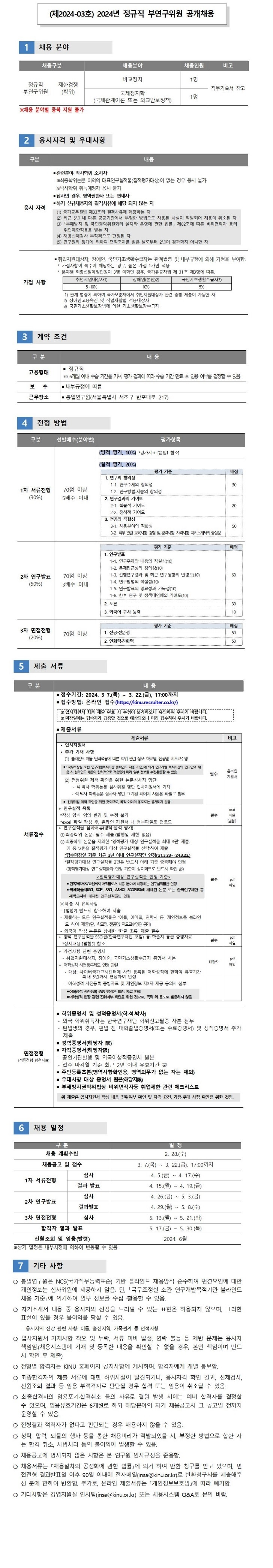 [채용] 2024년 정규직 부연구위원 공개채용 공고(제2024-03호)